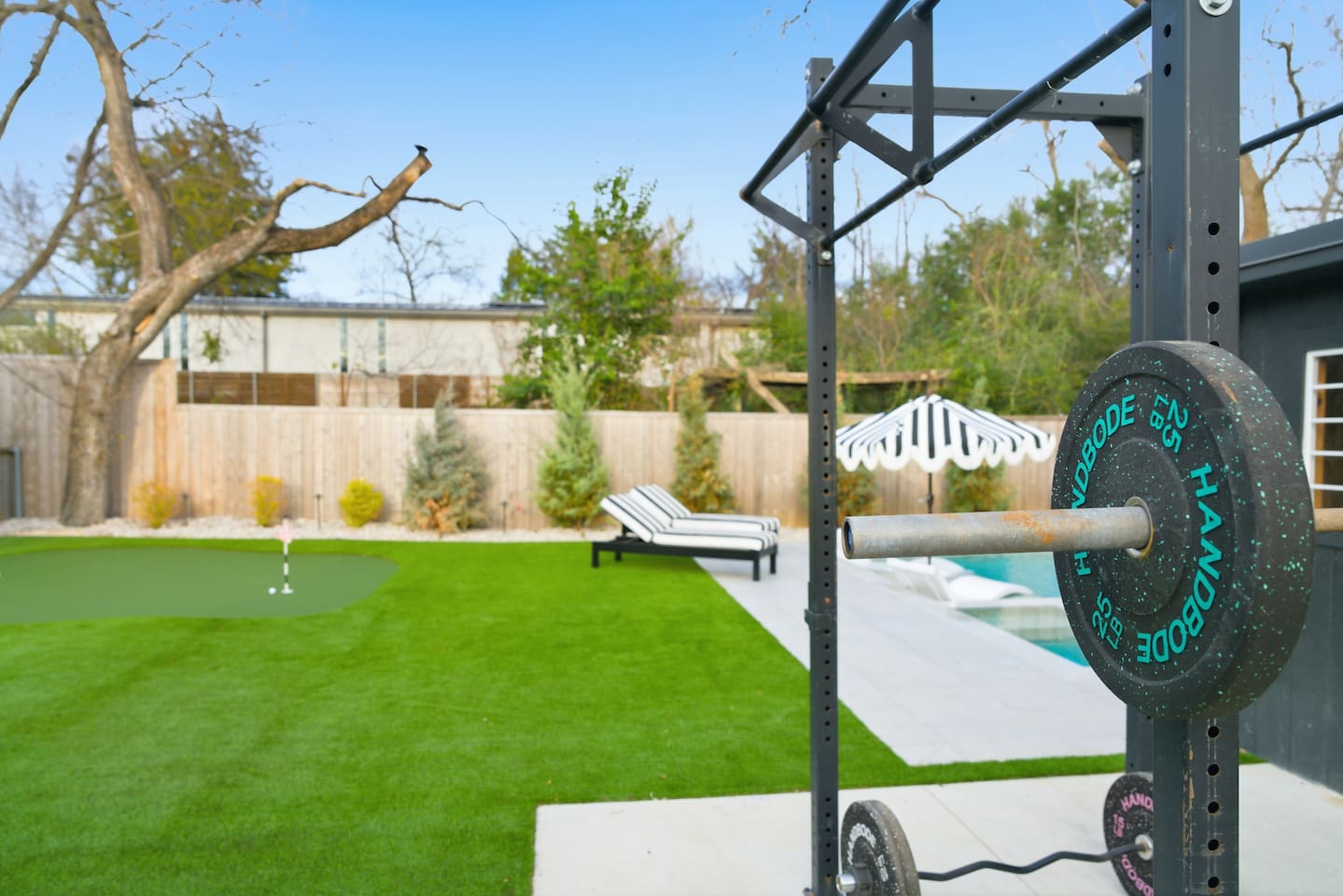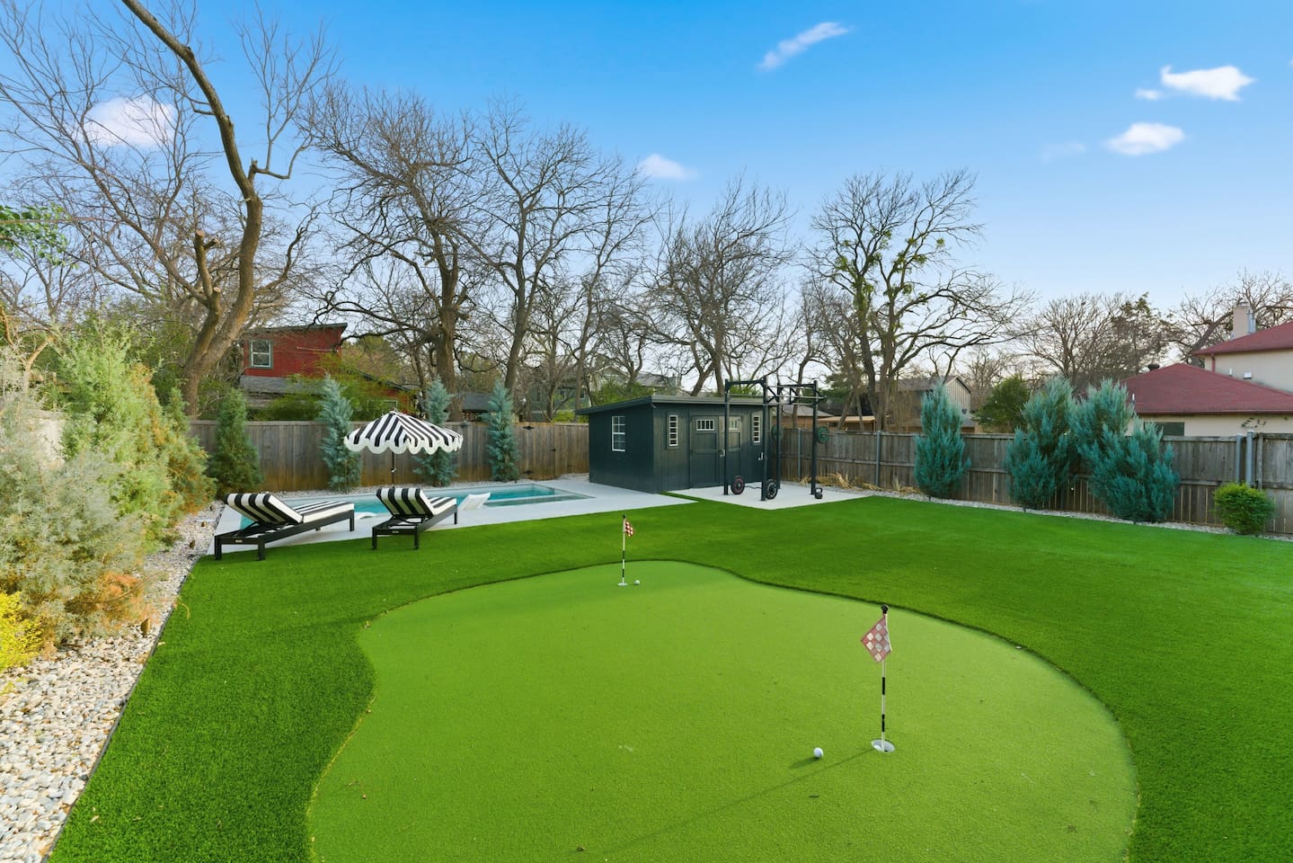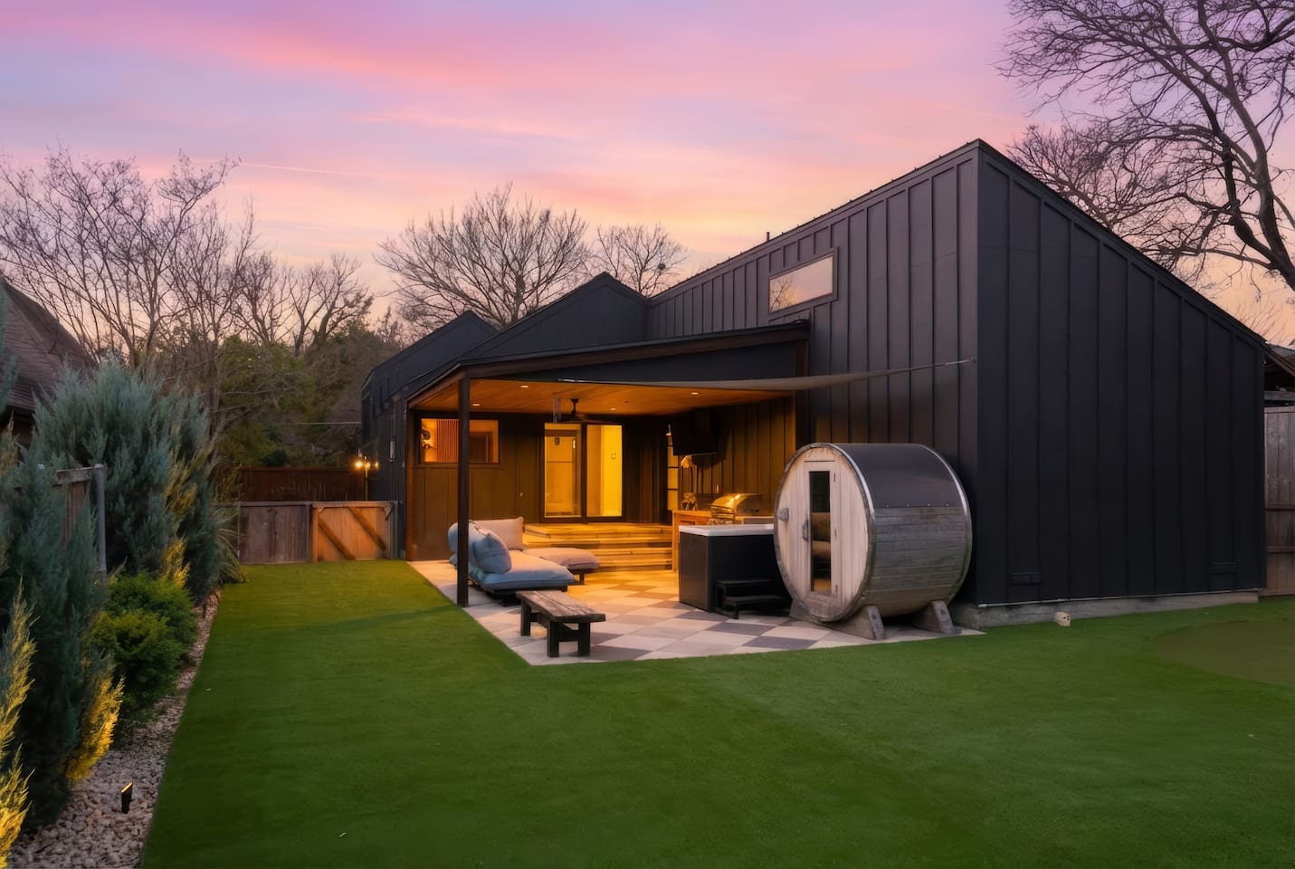 Pool, hot tub, sauna & cold plunge — Dallas's only private wellness retreat with all four, plus outdoor gym and putting green. 3 bedrooms, sleeps 7. Full kitchen, fast WiFi, free parking, keyless entry. Outdoor entertaining station with built-in grill, wood-fired pizza oven & outdoor TV. Smart TVs, dedicated workspace. 15 min from downtown Dallas. Easy access from all major highways. Book your wellness retreat today.